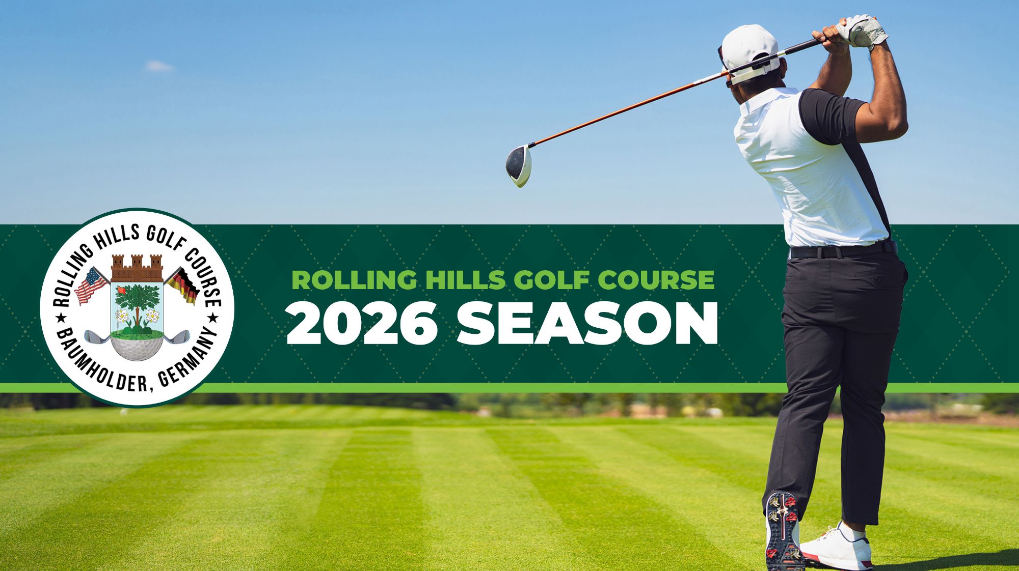 The Rolling Hills Golf Course, Bldg. 8888 on Wetzel Kaserne, announces their 2026 Tournament schedule from April to November. Many of the tournaments are for both American and German golfers.