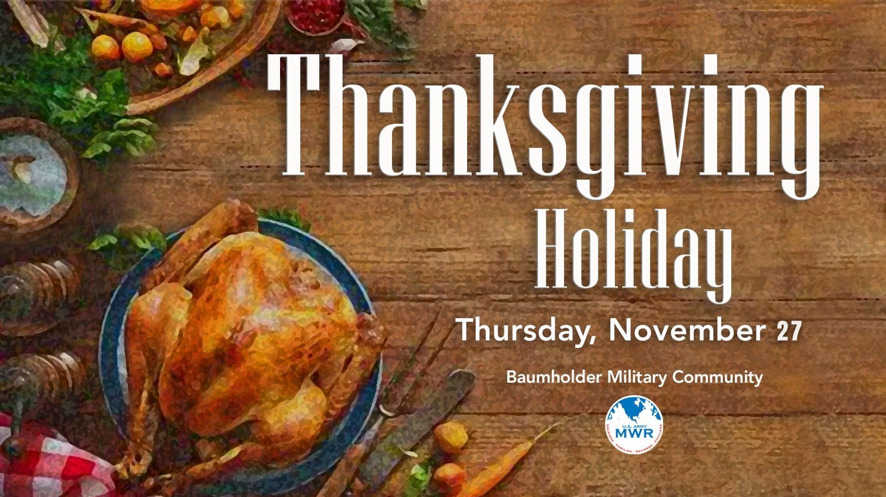In observance of the U.S. Thanksgiving holiday on Thursday, November 27, Family and MWR facilities may be closed or have modified hours.