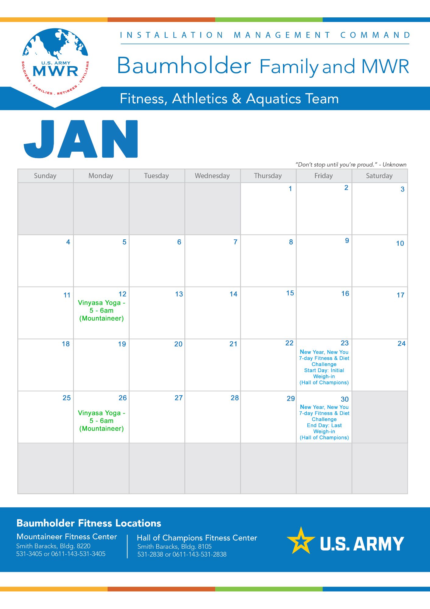 Many find it difficult to reach their fitness goals because they are not adequately educated and motivated. If this is something that you are worried about, you may want to consider talking with our local Family and MWR fitness professionals.